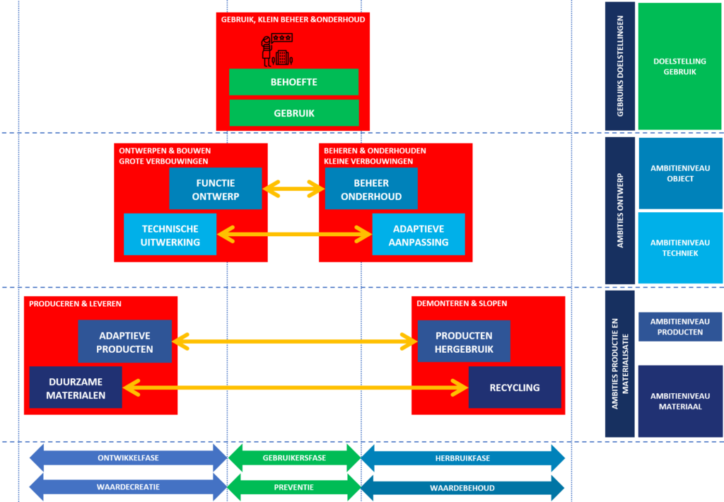 Toekomstbestendigheid: extra’s in het ontwerp om bijvoorbeeld de levensduur van het object te verhogen of verplichte onderhoudshandelingen te minimaliseren. Strategie ontwikkeling gebruik over meerdere cycli.